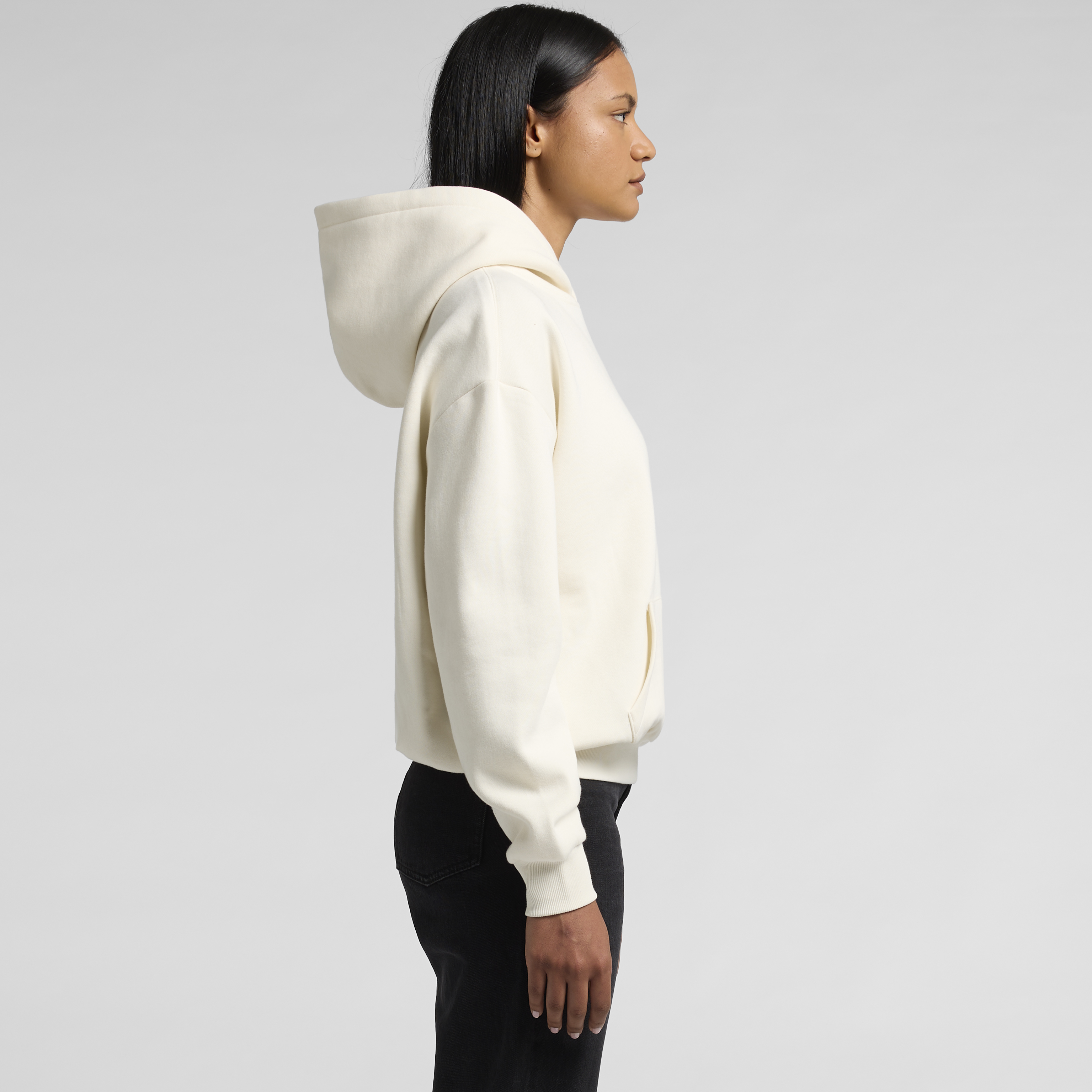 Construction: Zip hood, drop shoulder, kangaroo pocket, self-fabric lined hood, no drawcord, YKK zip, sleeve cuff ribbing